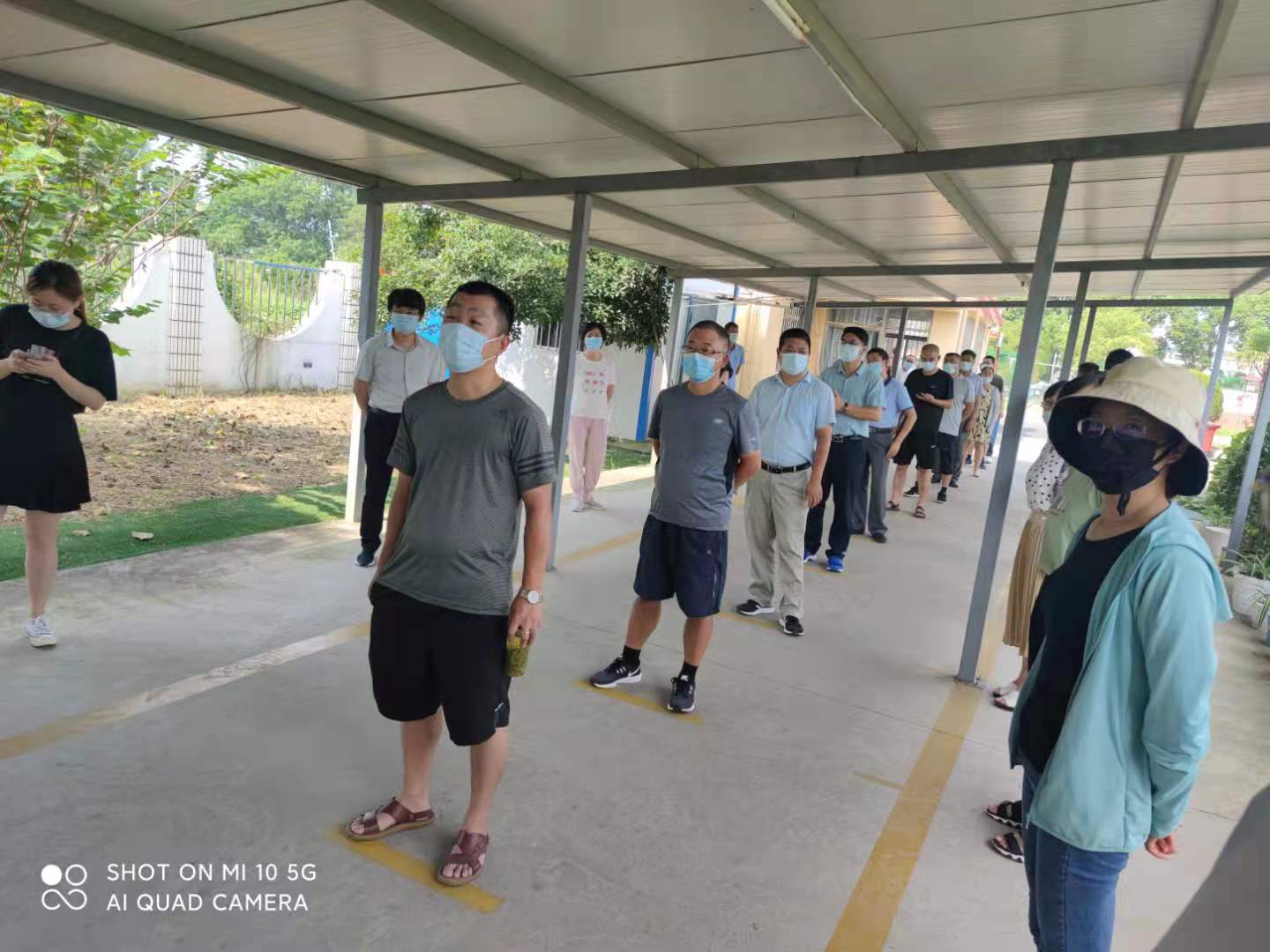 8月30日上午在防控总指挥李春华校长宣布演练开始。演练内容分为早晨进校,学生在学校门口按照1米的安全距离排队经过体温监测通道,突然体温监测仪发出异响,提示学生甲(教师替代)体温异常和学生进入教室午休,班主任进行午检,发现学生乙体温异常两个场景。