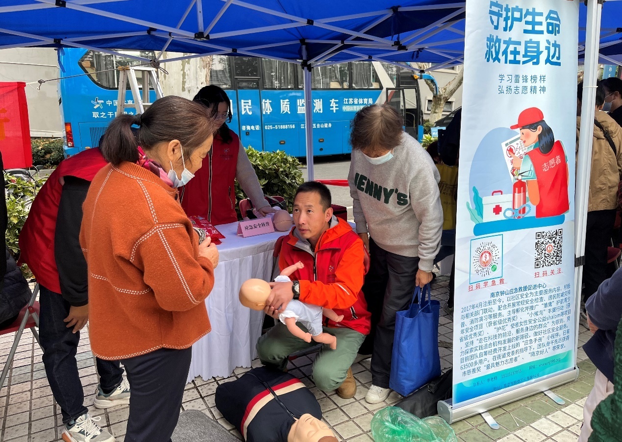 当天恰逢全国消防安全宣传教育日,第七批江苏省首席科技传播专家李颜也带领自己的团队来到现场,给居民示范讲解急救和消防知识。居民张叔叔体验了一次心肺复苏的手法之后说:“感觉还是蛮累的。学一学急救科普非常重要,不仅自身受益,关键的时候还能够帮助他人。”