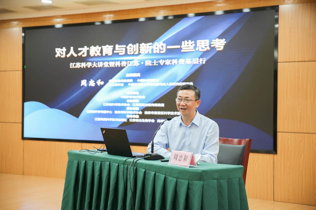 9月28日,由省科协主办,省科学传播中心、凤凰传媒集团、市科协、秦淮区科协联合承办的2025年第五期江苏科学大讲堂暨科普江苏·院士专家科普基层行在秦淮区举办。全国政协常务委员、中国科学院院士、古生物学家、中国科学院古脊椎动物与古人类研究所研究员周忠和应邀作题为《对人才教育与创新的一些思考》的专题报告。省科协党组成员、副主席冯少东主持报告会。省科协党组成员、分管领导、二级巡视员,市科协主要领导,秦淮区政府主要领导讲座前与院士进行了亲切的交流,省市科协机关事业单位有关人员,秦淮区机关部门、街道等相关单位200余人参加报告会。