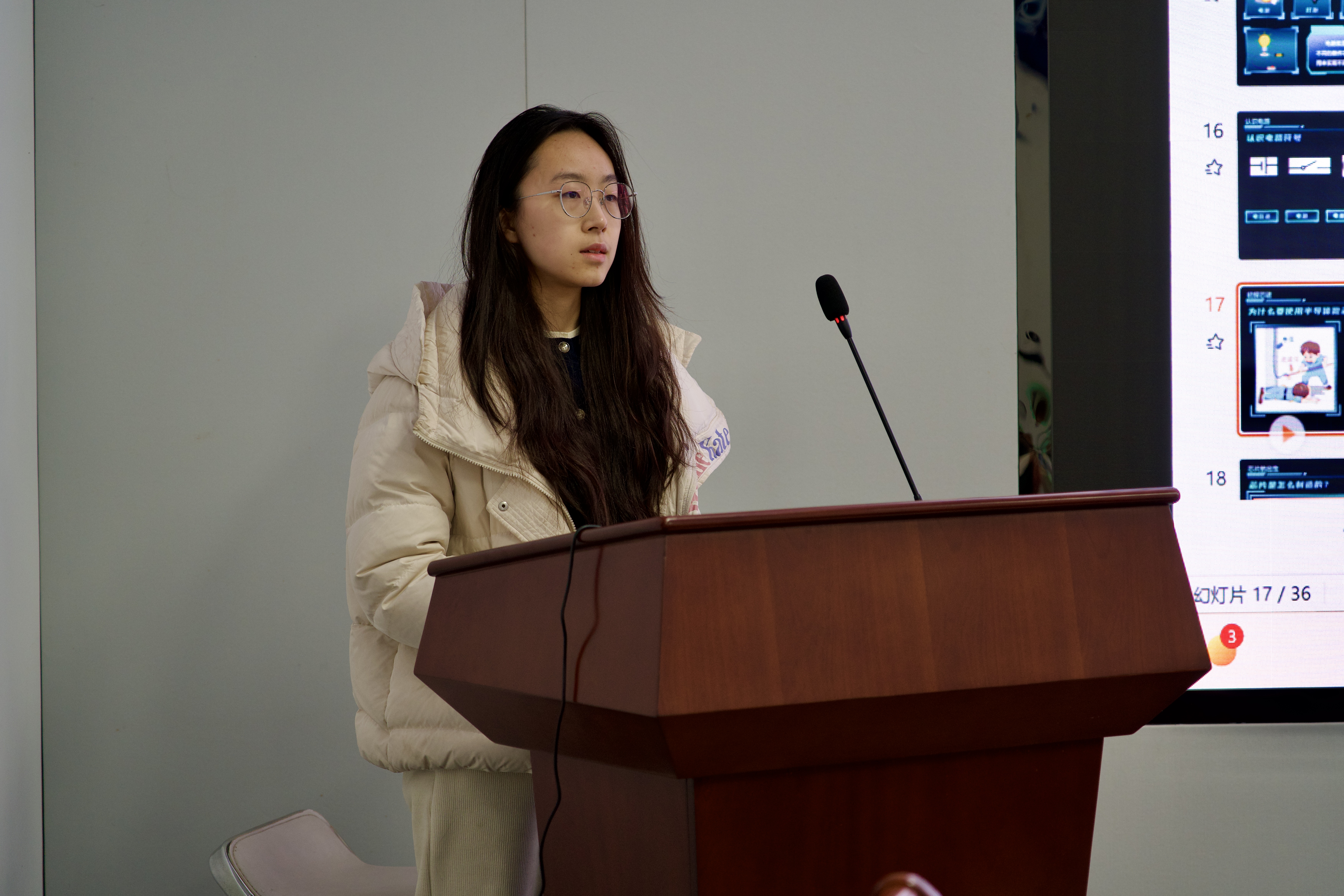 座谈会上,南邮“芯中邮我”科普团率先分享了团队在集成电路科普领域的实践探索。团队成员任博艺详细展示了精心打磨的科普课件与课程体系,生动阐述了如何将晦涩难懂的芯片知识转化为适配不同群体的通俗内容,分享了在基层科普实践中积累的教学方法与心得,展现了南邮团队深耕科普、服务大众的扎实功底。