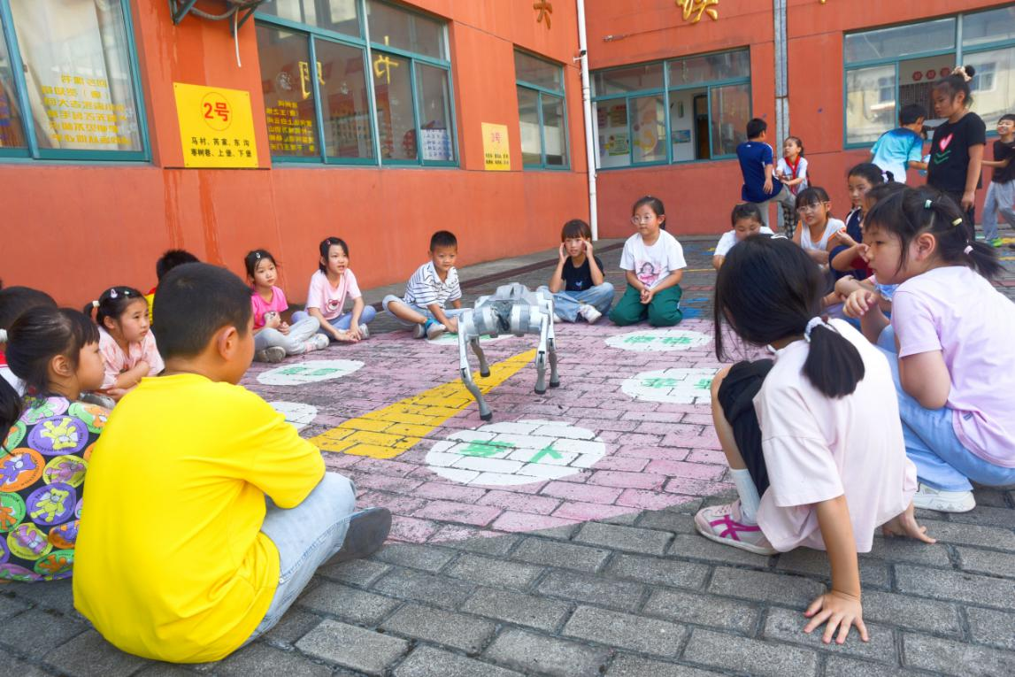 “共振环”的嗡嗡声、“机器狗”的灵活舞步,更是让校园充满欢笑声,孩子们围在周围,模仿机器狗的姿势,志愿者则耐心讲解传感器如何让机器狗“听话”。而在“八皇后”趣味数学区,几个爱思考的孩子正拿着棋子尝试排列。最特别的是“保尔加利正方形”展台,孩子们将四块“缺角”的板块拼成正方形,再加入一块小正方形,竟依然能严丝合缝。“这是视觉错觉的小技巧,其实藏着巧妙的空间。”志愿者的讲解,让孩子们对图形奥秘充满好奇。