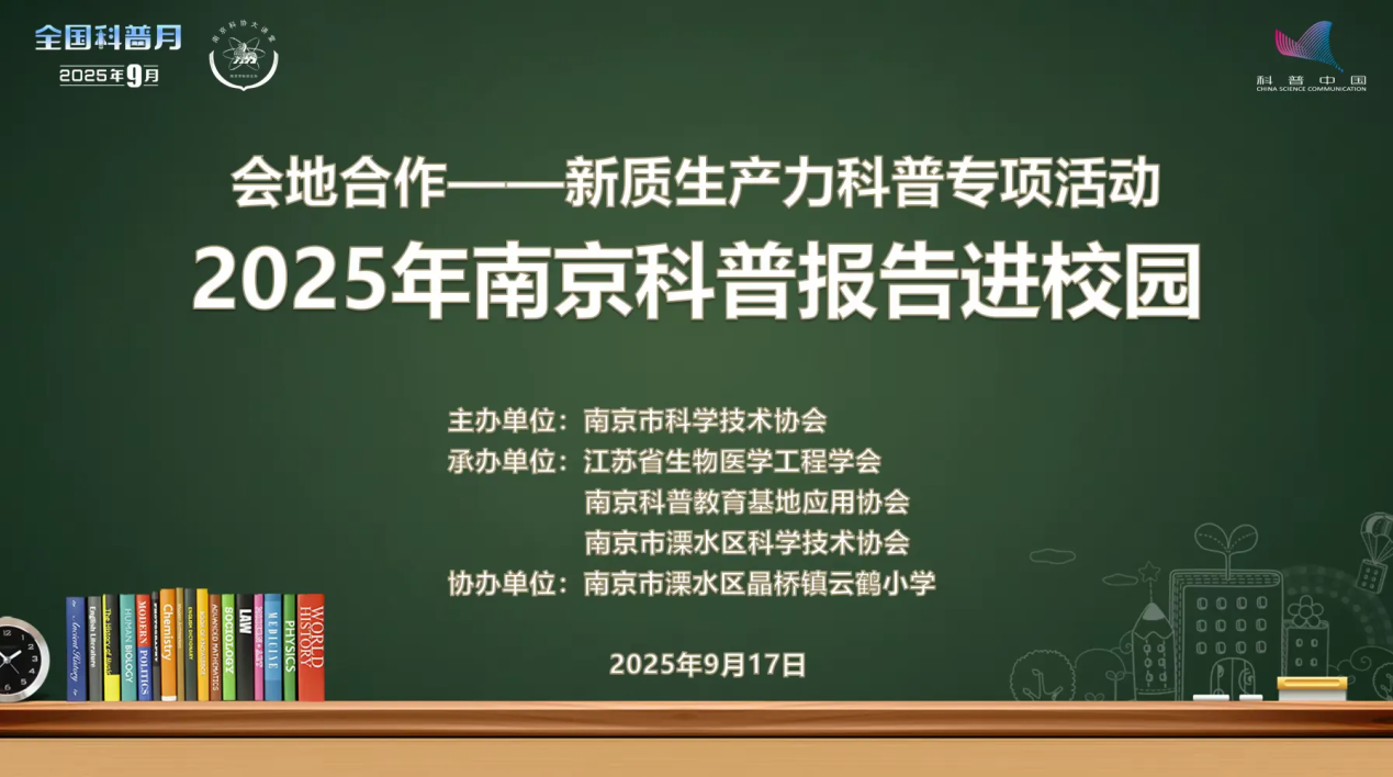 秋阳和煦,草木葱茏。近日,由市科协主办,省生物医学工程学会等多家单位承办的2025年“会地合作——新质生产力科普专项活动”之科普报告进校园活动,在溧水区晶桥镇云鹤小学成功举行。该校二、四、五年级的150余名师生齐聚一堂,共同聆听了由植物学专家宋东杰教授带来的精彩讲座《认识身边的常见植物,学做小小植物学家》。