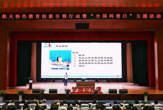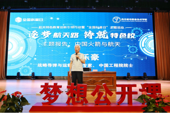 9月6日,在全国科普日来临之际,南京机电职业技术学院顺利举办《“逐梦航天路,铸就特色校”——航天特色教育创新引领行动》主题报告活动。本次活动由南京市科学技术协会主办,南京机电职业技术学院承办。战略导弹与运载火箭专家、中国工程院院士龙乐豪,中国航天科技国际交流中心副主任周岫彬,南京市教育局副局长田家英,南京市高淳区政府副区长邱峰,南京新工投资集团总经济师洪薇,上海航天专家、高级技师、上海航天技能实训中心主任秦文津,南京高职园党工委副书记、管委会主任孔桂红,南京机电产业集团副总经理沈达和南京机电职业技术学院党委书记、校长周庆礼等领导及600余师生参加了本次活动。