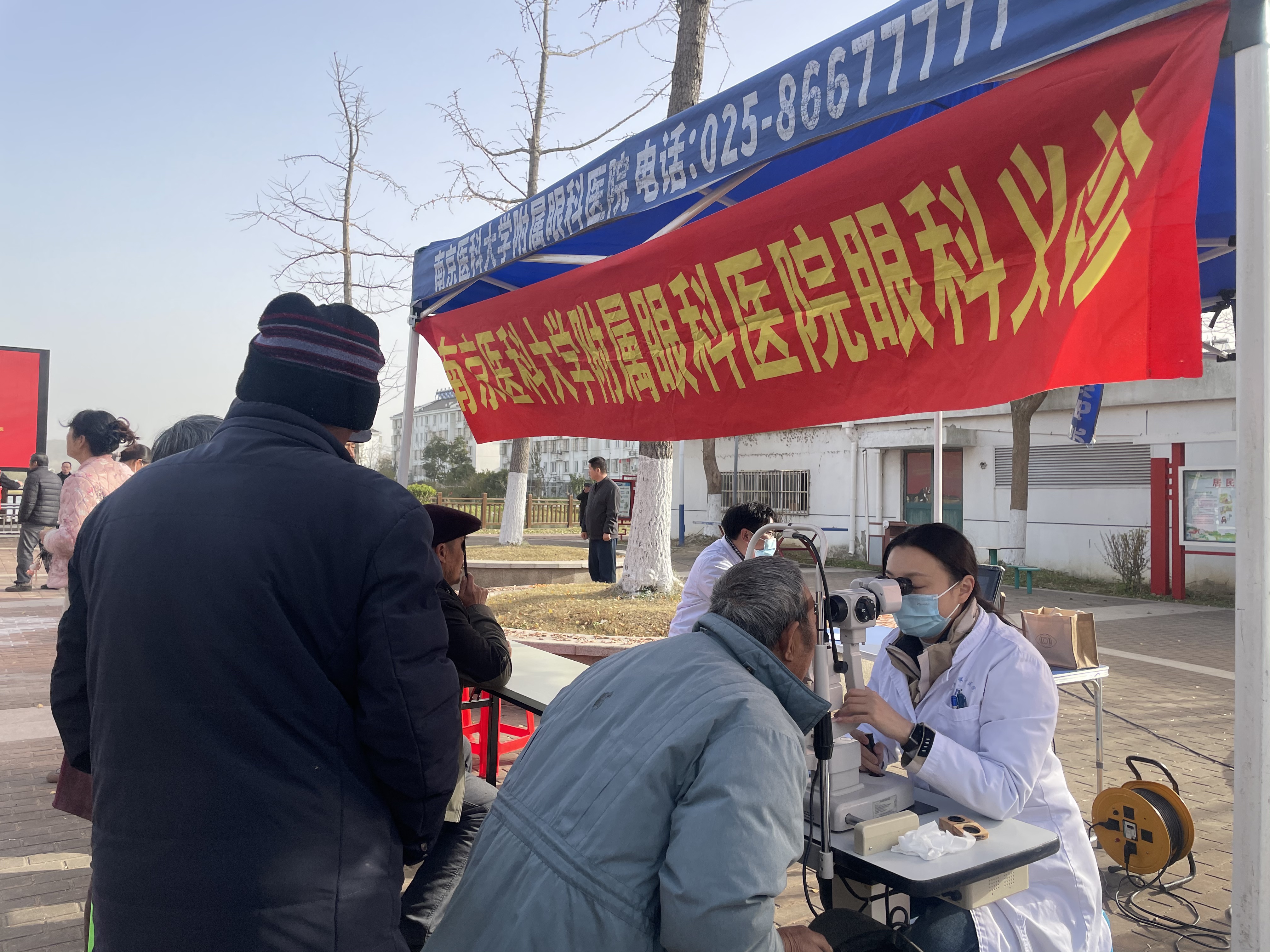 联合义诊服务区现场,市眼视光学会和南京医科大学眼科医院六合院的医护人员为村民提供免费眼科检查,马集社区卫生服务中心开展血压等基础检查与健康咨询,将健康关怀送到村民身边。