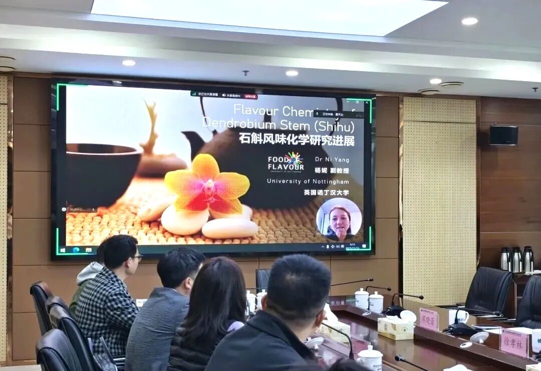 会议旨在推动国内低GI食品领域的研究深化与产业转化,为“健康中国”建设提供实际支撑。学术报告环节,6位专家学者带来了亮点纷呈的前沿研究分享。英国诺丁汉大学Nicole Yang教授以《石斛风味化学研究进展Flavour Chemistry of Dendrobium Stem (Shihu)》为题进行报告,对石斛风味化学研究最新进展进行了介绍;日本医学研究中心刘研究员,聚焦日本社会老龄化现状,从老龄化产业发展格局、技术创新前沿趋势、标杆产品实践案例等维度展开深度解析。武汉轻工大学应教授以我国食药同源研究的历史脉络为切入点,阐释了如何利用先进AI技术在食药同源物质开发利用中的创新应用路径;无锡中医院刘主任医师以《应对慢病浪潮:精准营养下的低GI食品》为题,系统阐述我国糖尿病防控政策变化与慢病管理现状,结合低GI食品的临床研究进展及国家相关政策导向展开深度展望;中国药科大学李教授聚焦抗衰老领域的食药同源物质挖掘,深入阐释了中药在抗衰老领域的独特优势;南京工业大学年教授立足于合成生物学基础,模拟并验证了酶性能强化机制与功能性脂质绿色合成路径,展示了团队在新型脂肪酶开发领域的最新研究成果,为糖脂代谢类疾病预防的营养品的绿色制造提供了创新技术思路。