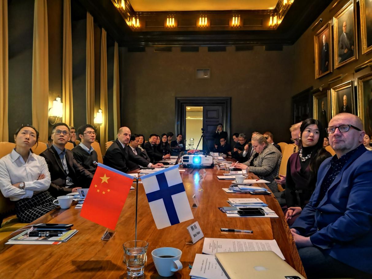 2018年12月,秦淮区代表团出访芬兰,在赫尔辛基召开集聚芬兰创新资源恳谈会