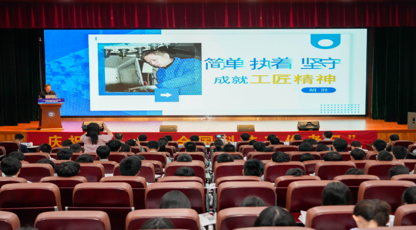 5月30日下午,正值第24个全国科技活动周和第八个“全国科技工作者日”之际,南京市举办科学家精神宣讲系列暨科学家(精神)进校园活动,活动邀请到中国工程院院士蒋剑春、大国工匠胡胜和优秀科技工作者鞠卫国走进南京高等职业技术学校,为师生们送上一份“精神大餐”。南京市科协党组书记、主席朱军到会致辞,建邺区委副书记陈光辉、南京高等职业技术学校校长杨正民、党委书记唐云清等领导出席活动,300多名师生和南京企事业科协工作研究会会员代表落座聆听。