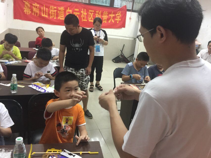 为丰富暑期少儿的精神文化生活,提高青少年科技思维,激发青少年的创造积极性,放飞青少年梦想,8月15日上午,白云社区科普大学邀请了兄弟区科技辅导员张翔老师进行现场辅导,为辖区内青少年举办航模制作夏令营活动。