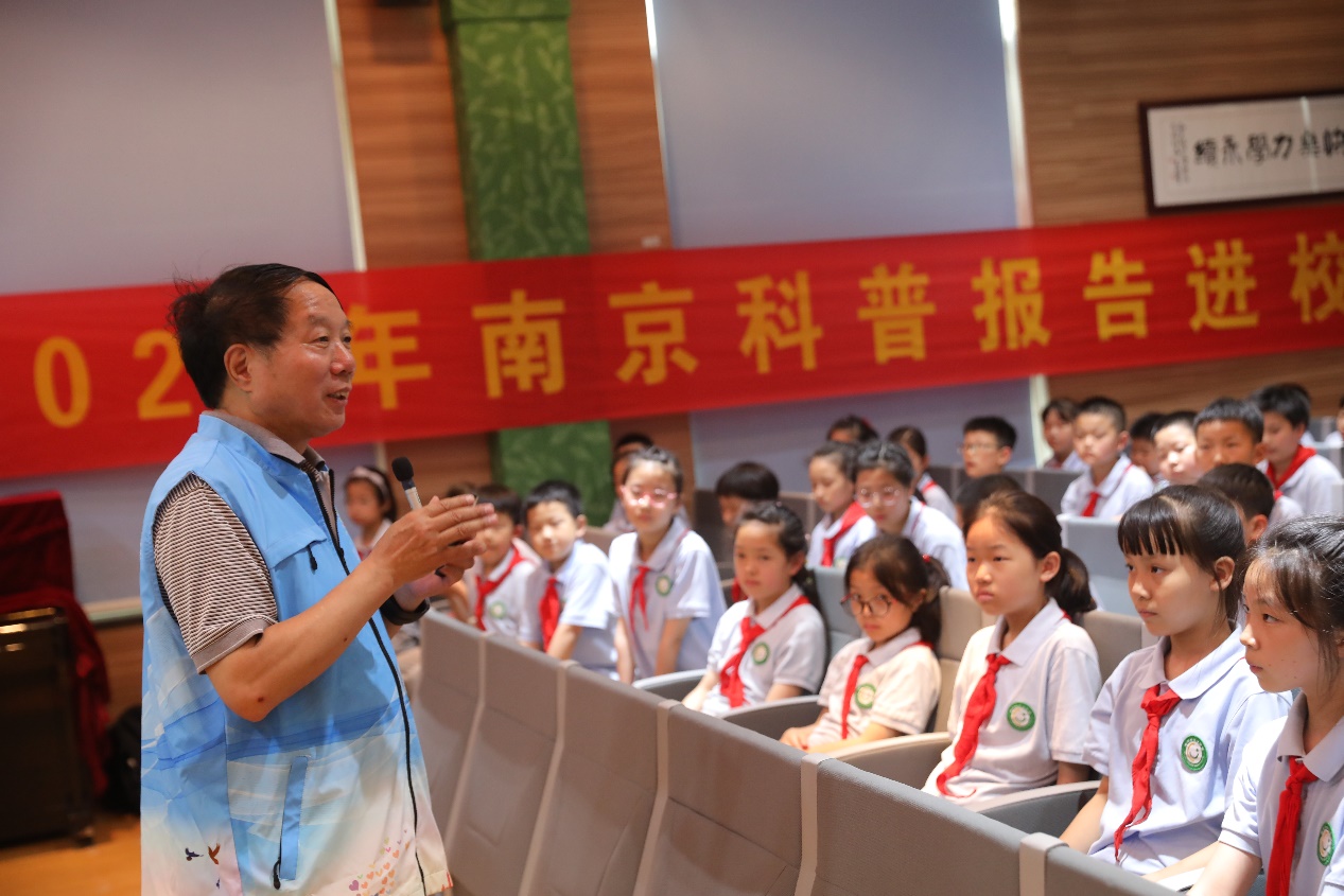 活动邀请了东南大学任祖平教授作题为《小学生如何开展科技创新活动》的科普报告。任祖平从洗衣服、擦玻璃等生活小细节中的科学原理入手,激励学生通过家务劳动发挥创新思维,形成良好的习惯,最终开展创新实践。