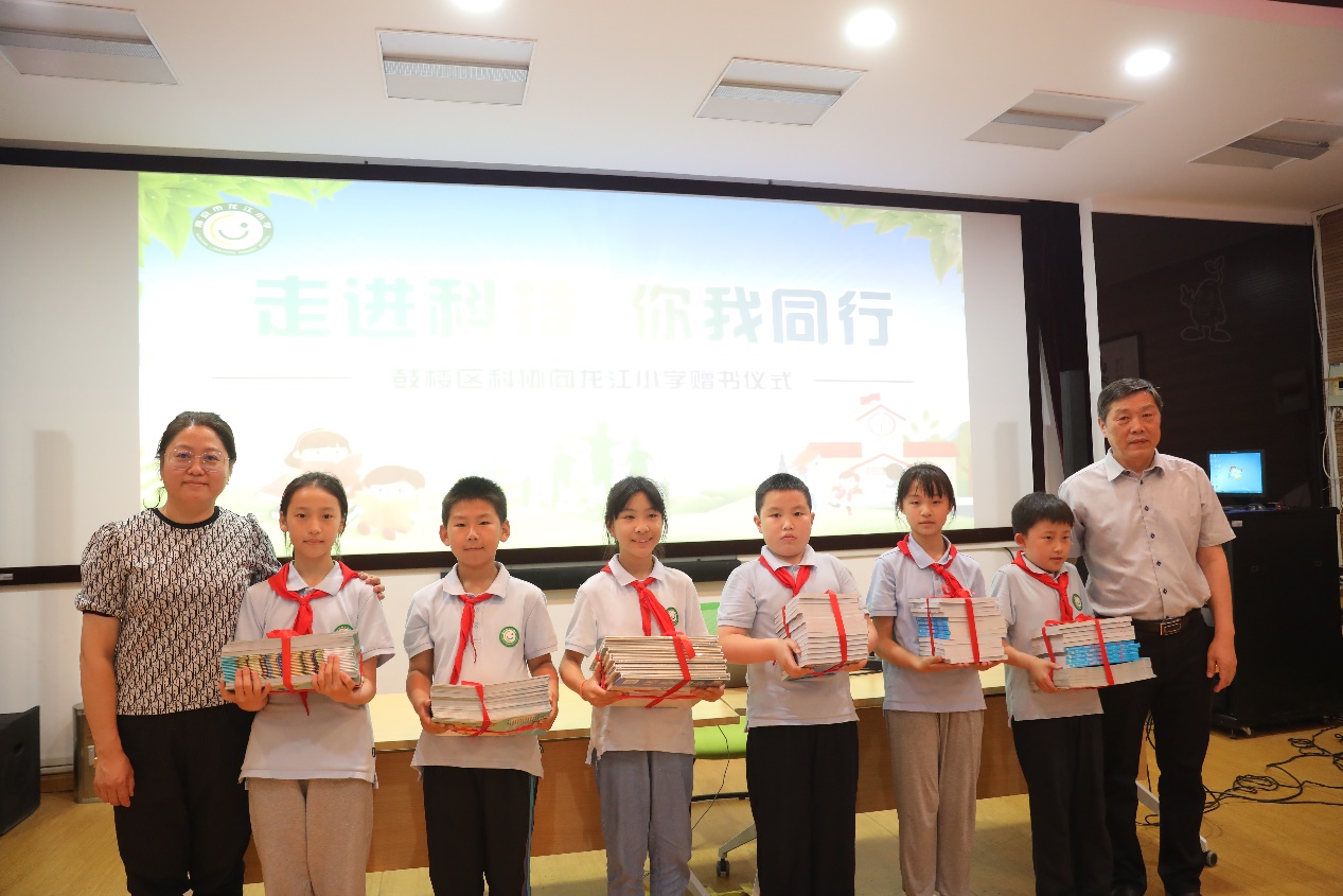 《未来机械世界》《图说童趣 二十四节气》《科普地图》……现场,鼓楼区科协副主席许启明为学生代表赠送200本科普图书。看着装帧精美的图书,学生忍不住立刻翻阅起来。
