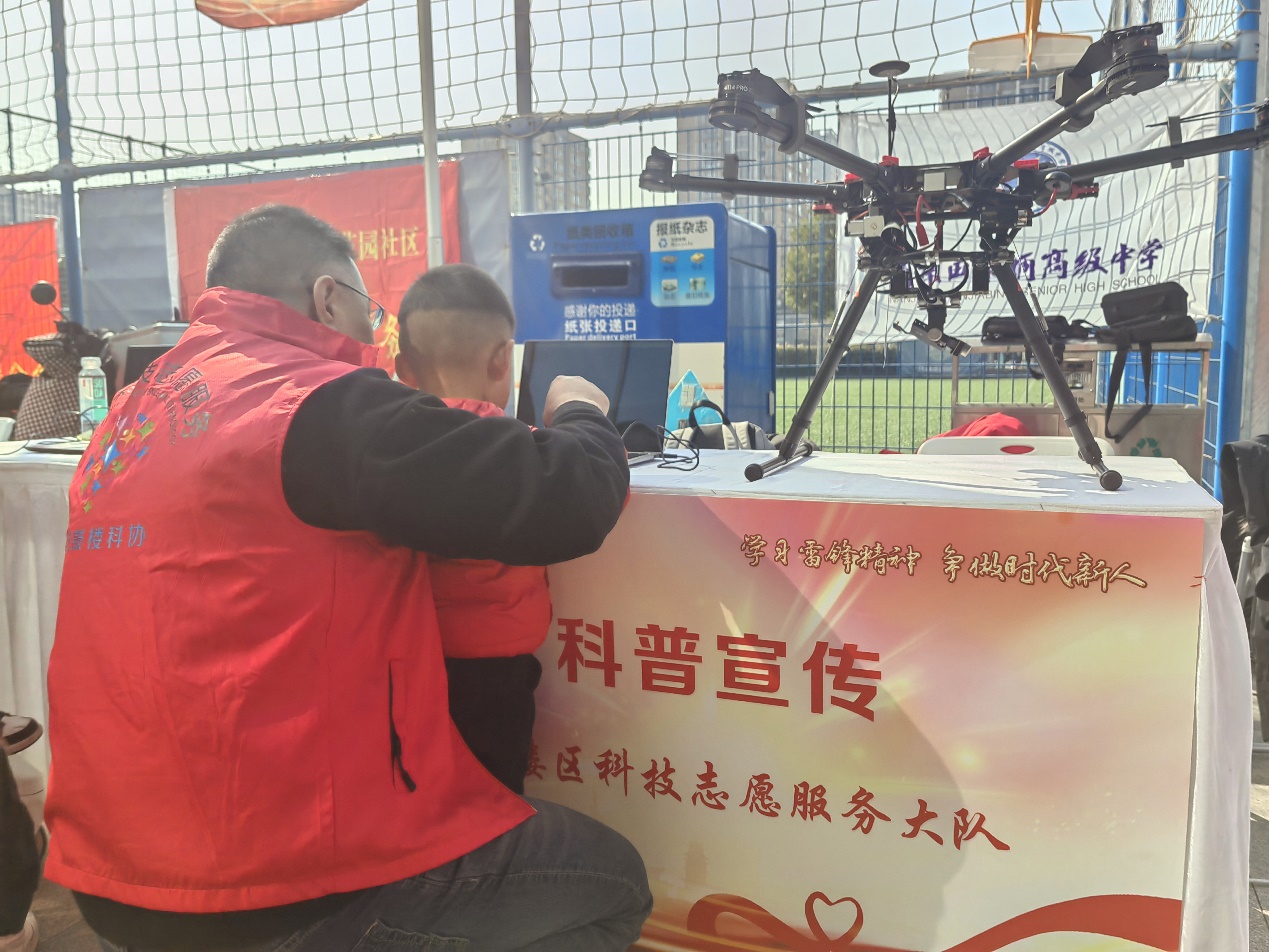 活动现场,鼓楼区科技志愿服务大队等12支志愿服务队伍搭设展台,为居民朋友提供法律咨询、健康咨询、科普宣传、科创展示、便民服务等。其中,科普宣传展区,南京田家炳高级中学沈涛老师带领的无人机科技志愿服务团队,引来许多居民特别是小朋友围观,志愿者们边讲解边教小朋友们实操,进一步激发青少年好奇心、想象力、探求欲,树立热爱科学、崇尚科学的社会风尚。