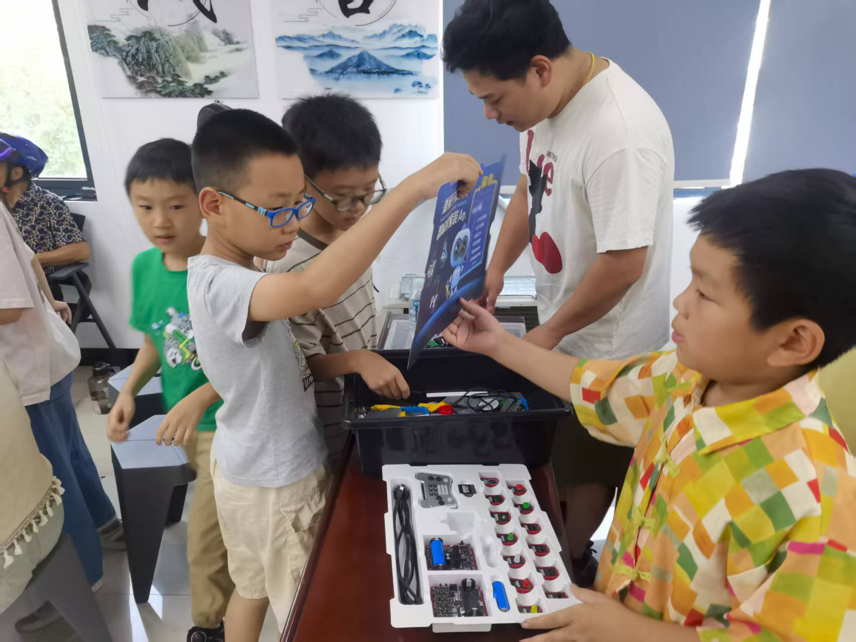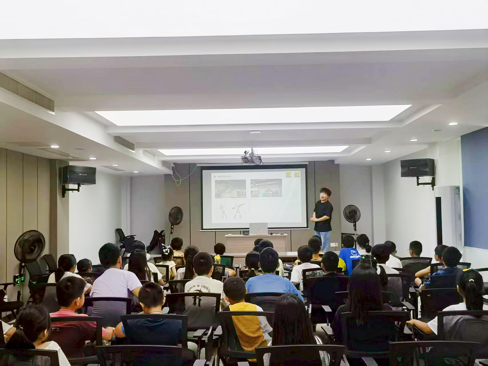 实践环节以分组的形式进行。老师首先以一组科普问答,让孩子们回顾了机器人的基本知识和工作原理,大家争先恐后参与答题。
