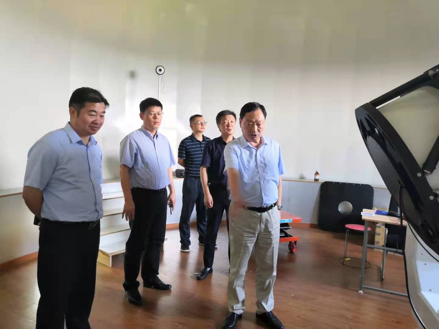 据介绍,活动基地聘请南京大学天文与空间科学学院教授和紫金山天文台专家,对基地教师进行专业培训及研发天文科技教育课程。新购置的60cm口径望远镜和太阳色球望远镜可以实现远程控制观测,可以将观测到的图像传送到数据中心,对全市中小学开放。在考察组考察时,溧水区某学校师生正在进行相关暑期安全培训。