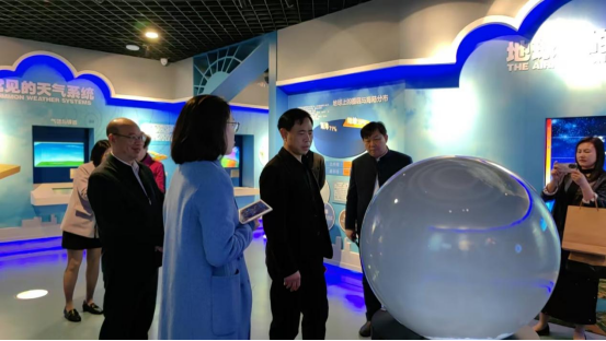 上午9时许,考察团首站抵达南京市江宁区气象馆。作为集气象观测、科普教育、防灾减灾于一体的综合性科普阵地,江宁区气象馆以其现代化的展陈方式和沉浸式的互动体验给考察团留下了深刻印象。在讲解员的引导下,考察团一行参观了气象探测设备展示区、天气预报模拟演播室以及4D气象灾害体验厅。段周权主席详细询问了场馆的日常运营模式,特别是如何利用数字化手段将专业的气象知识转化为公众易于理解的科普内容,便于将抽象的气象数据通过VR技术转化为可视化的台风、暴雨场景,让参观者在身临其境中学习防灾知识。