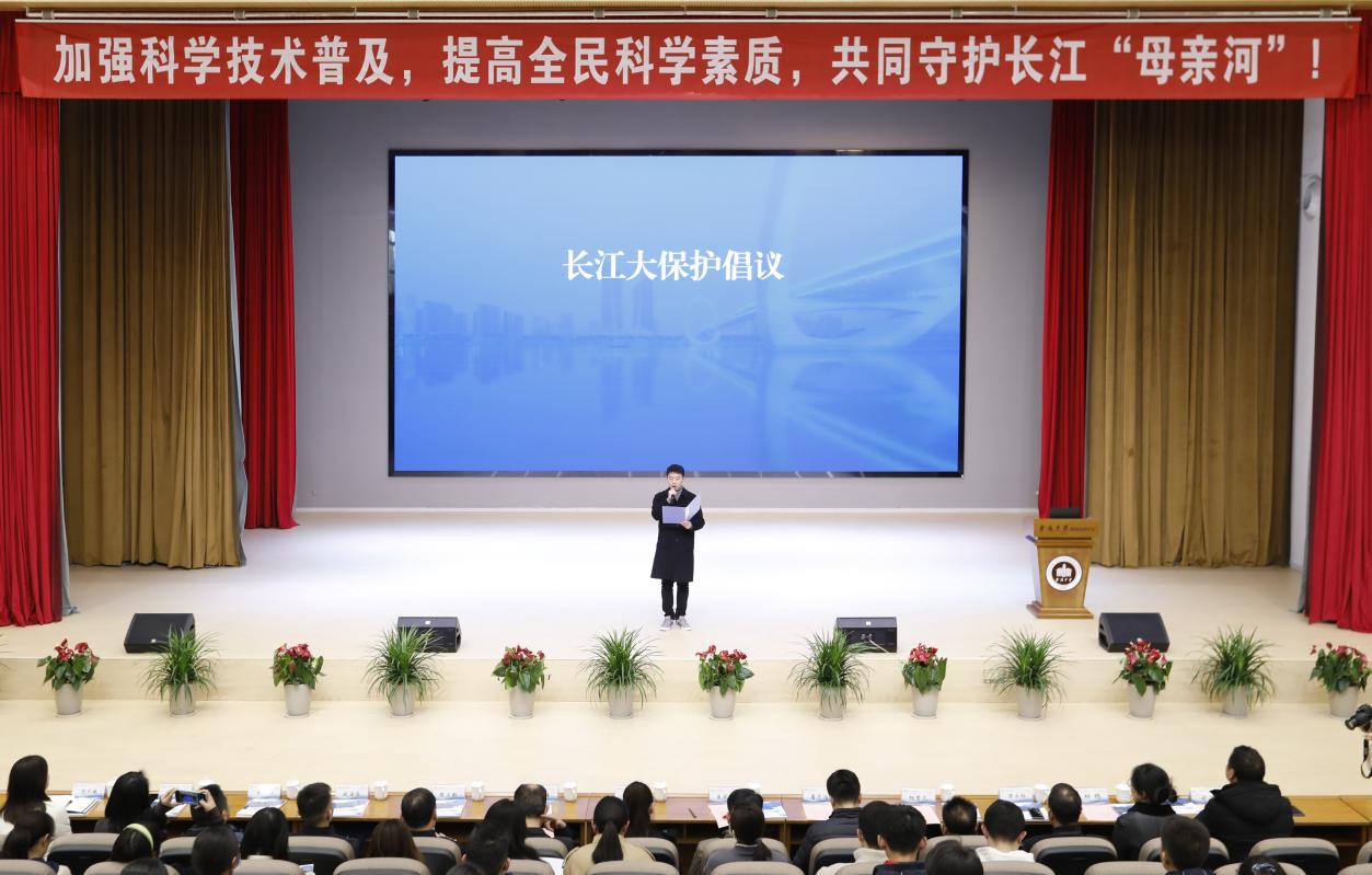 活动最后,还邀请东南大学交通学院工程师、南京守望自然科普中心联合创始人张燕宁,以讲座形式为大家带来一场探索长江的科普之旅。张燕宁用通俗易懂的语言,通过知识竞答、播放科普动画片和长江野生动物影像资料等方式多层次讲述长江保护的重要性,号召大家为生态留白,为发展增绿。学生们兴趣盎然、踊跃提问,令人印象深刻。