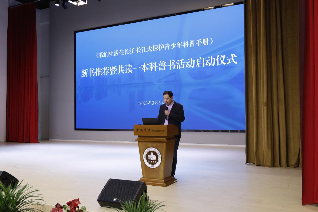 建邺区委宣传部三级调研员、区阅读办副主任王高峰向学生们推荐了《我们生活在长江:青少年长江大保护科普手册》,该书由南京守望自然科普中心、江苏省淡水水产研究所、江苏省动物学会联合编写,从文化、物种、保护等多层面解读长江,普及科学知识。建邺区全民科学素质工作领导小组办公室向学生代表赠送图书并启动共读一本科普书活动,让青少年更深入了解长江文化和品类繁多的生态物种,进一步强化长江保护意识。