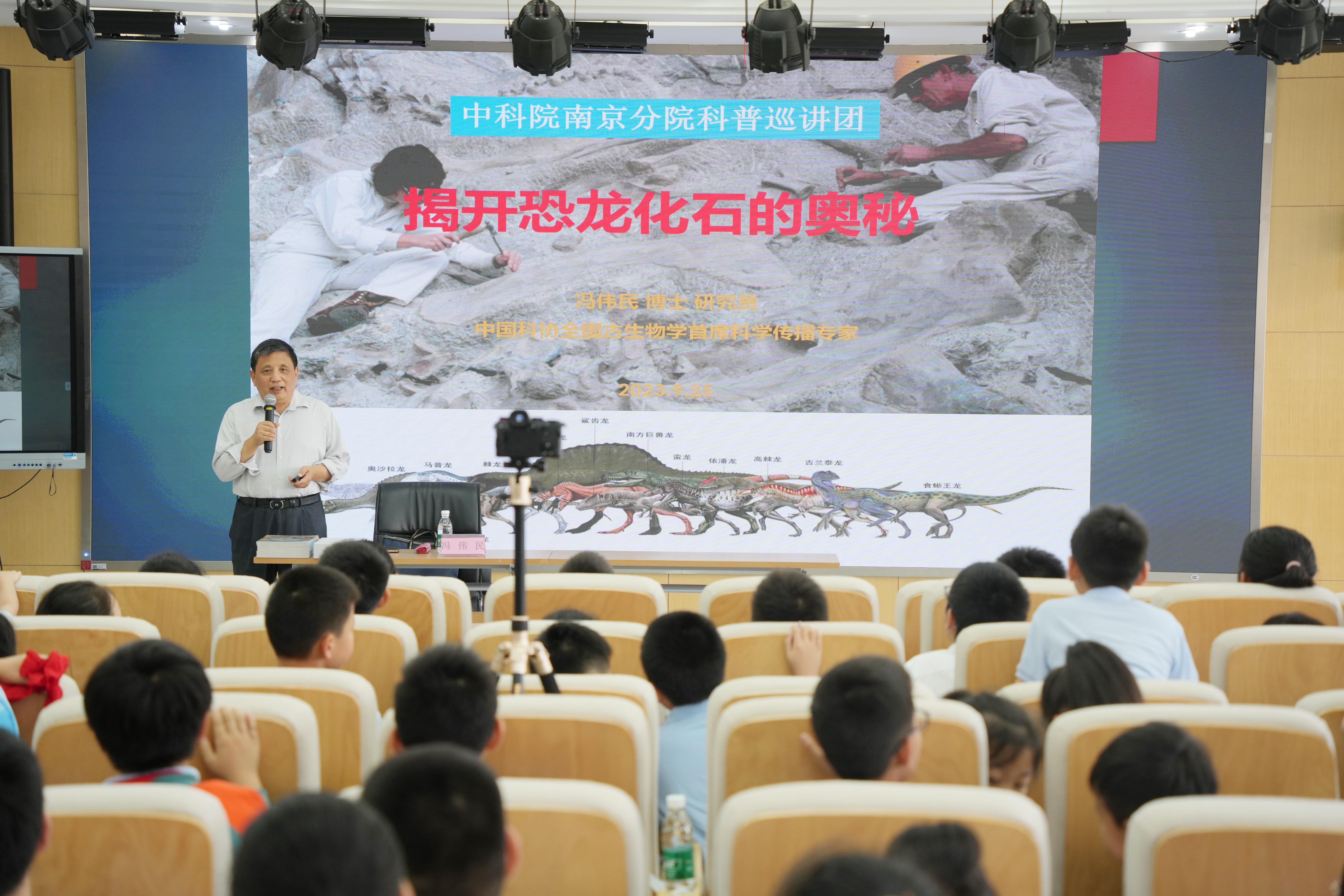 “恐龙化石是恐龙死后保存下来的遗骸或痕迹”,“小行星撞击地球会造成破坏”,“为了保护环境要控制二氧化碳排放”……,这里是中国科学院驻宁五所·建邺区科普共建活动——“科学家进校园”主题科普报告现场,一双双明亮的眼睛追随着科技之光,点亮学生们的科技心灯。