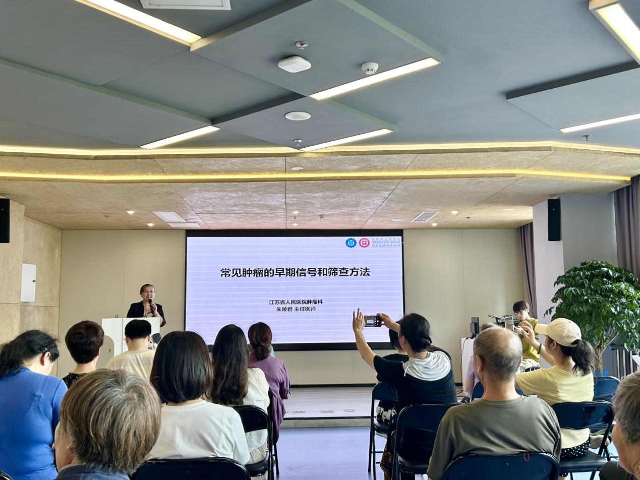 活动邀请到江苏省人民医院肿瘤科主任医师、南京中医药大学中西医结合临床博士、博士生导师朱陵君教授作科普讲座,通过“线下授课+现场直播”的方式普及健康观念和保健知识,将健康关爱送到居民家门口,以实际行动加强人民群众的幸福感。本次活动线上线下1万多名居民群众参与,累计观看总量近12万,受到了大家的普遍欢迎。