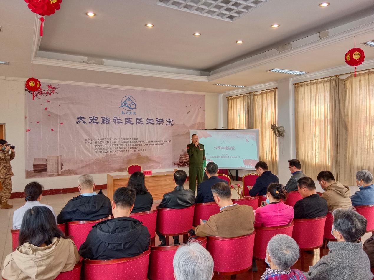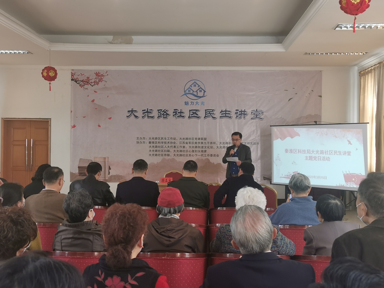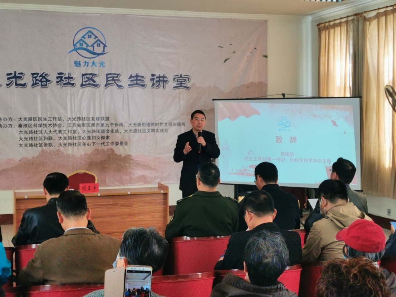 3月10日,由秦淮区大光路社区民生工作站联合区科协、省军区南京第九干休所共同组织承办的民生大讲堂开讲。