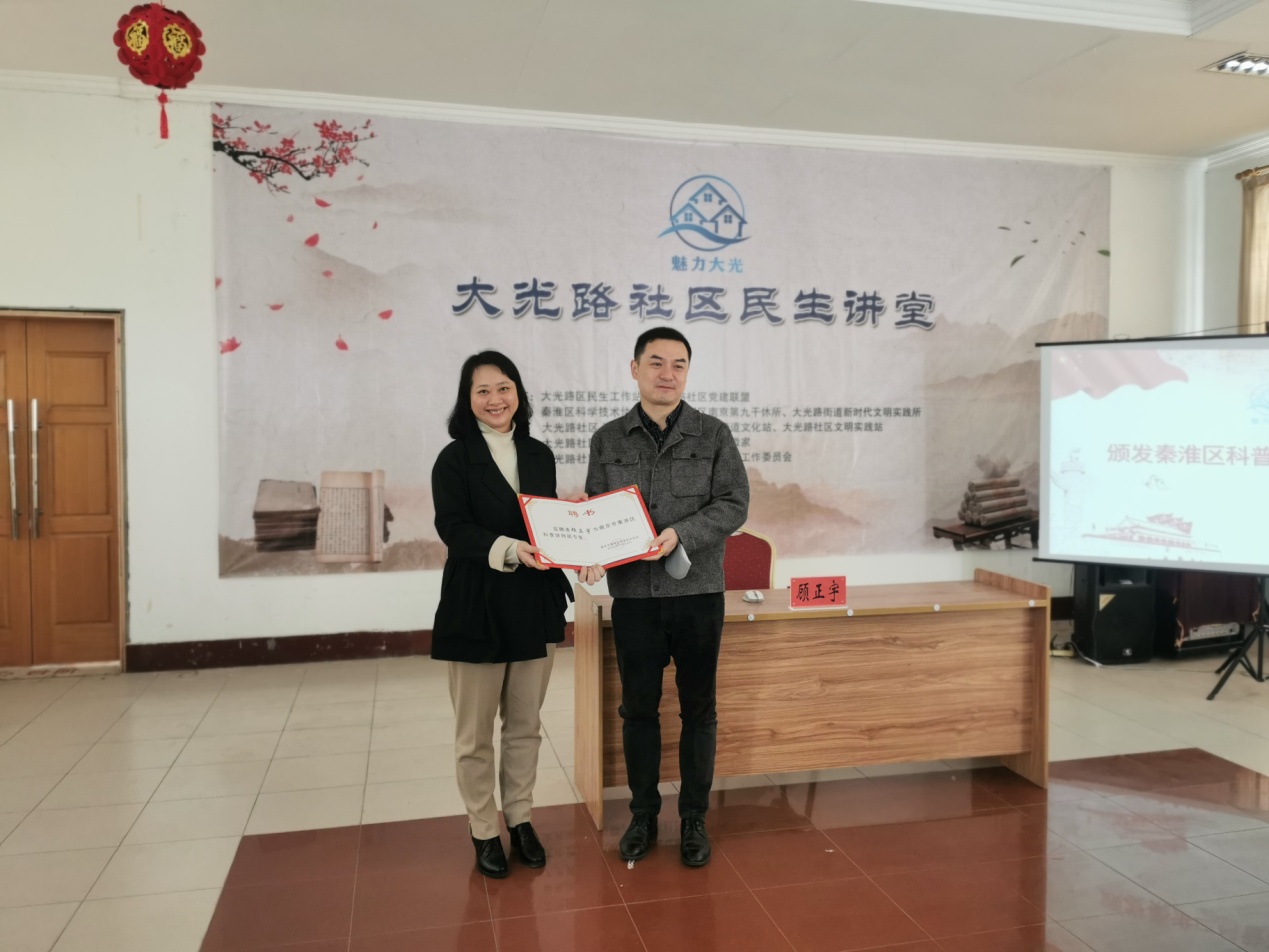 随后,区科协副主席周静为顾正宇主任颁发了秦淮区科普讲师团专家聘书。