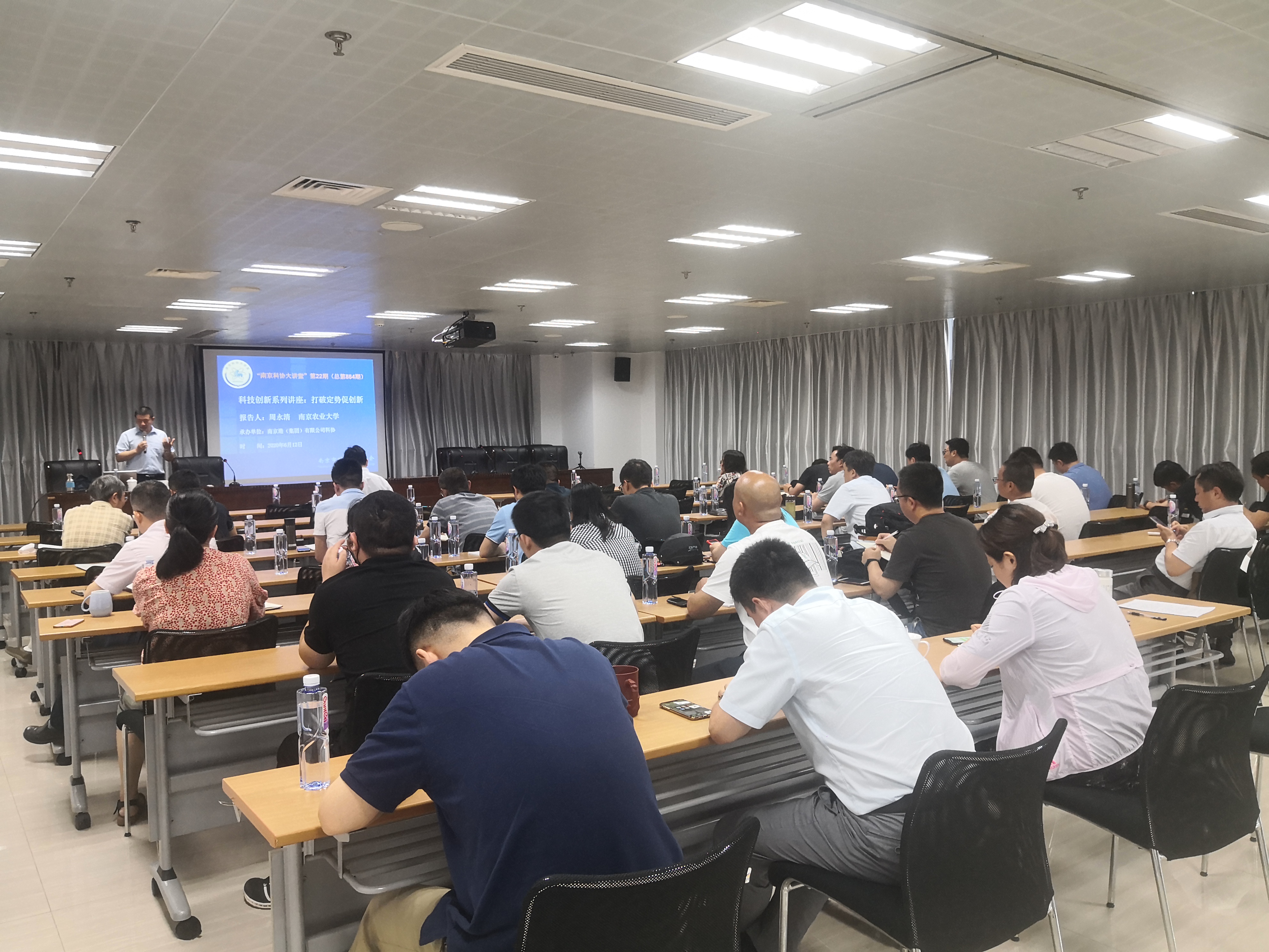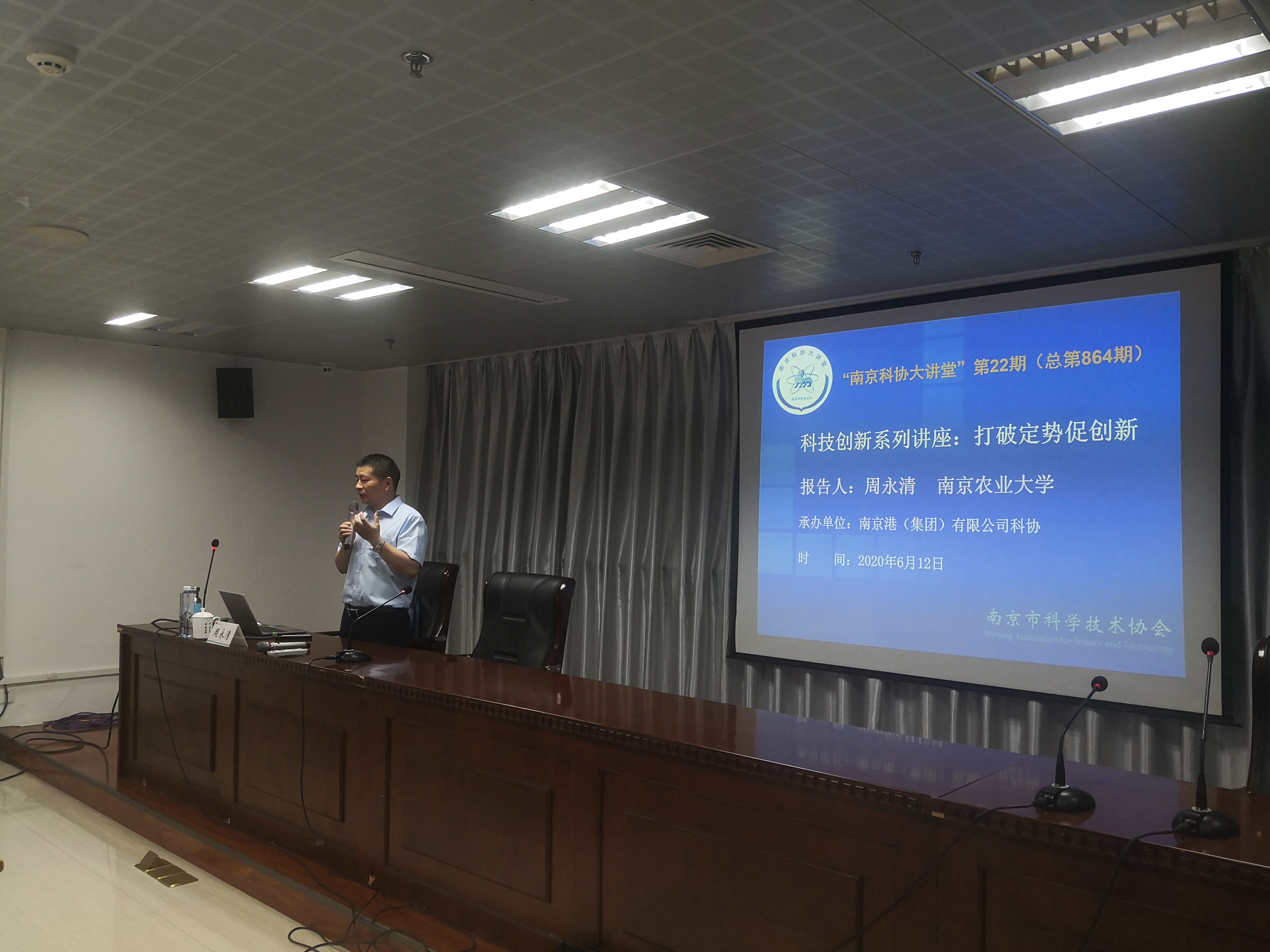 6月12日下午,南京港(集团)有限公司科协举办了2020年第22期南京科协大讲堂——《打破定势促创新》讲座,邀请了南京农业大学周永清教授,为公司60多名科技人员讲授了思维定势的类型及其破解方法,以及TRIZ中的创新思维等在技术创新、发明创造中的实际运用。