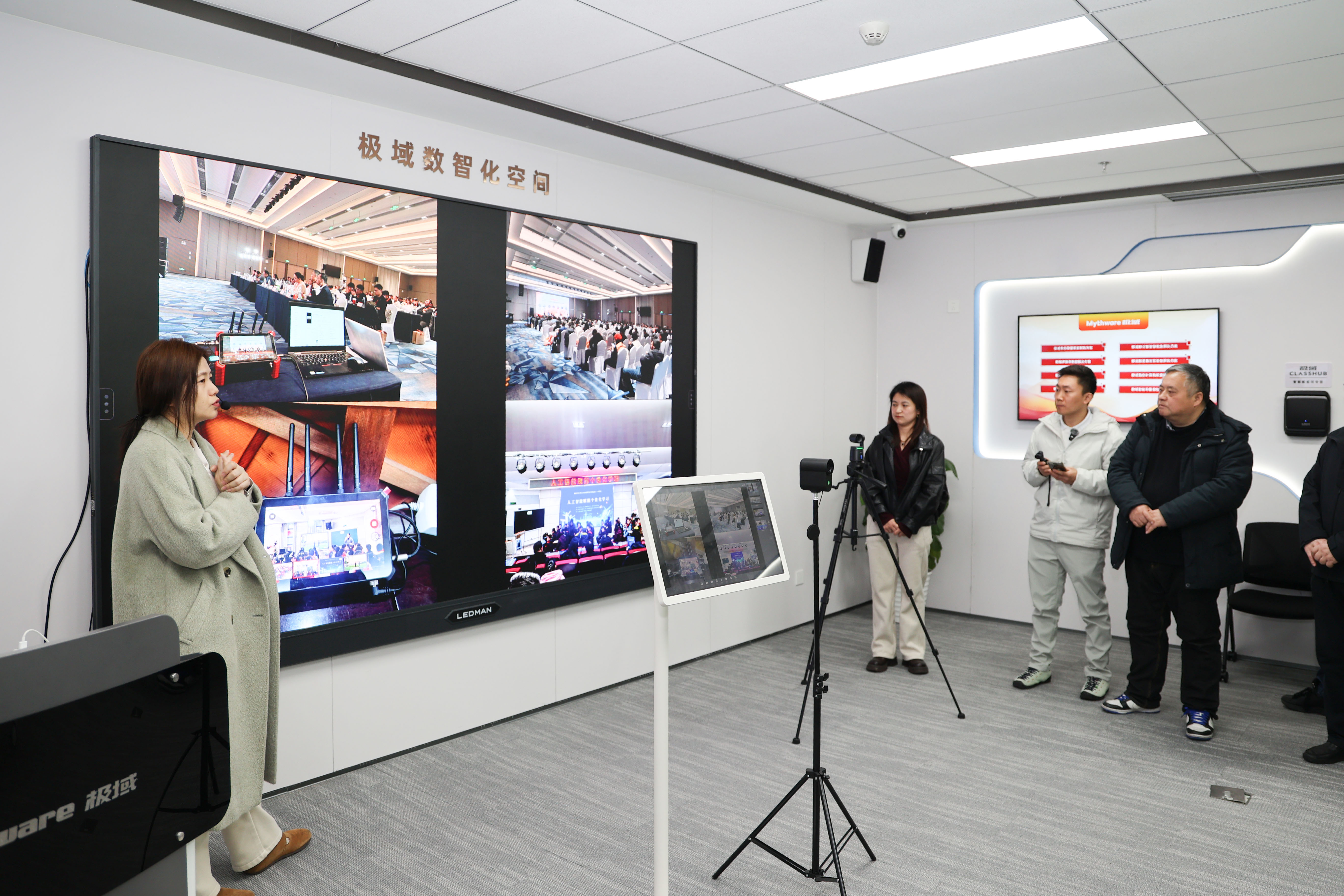 与会嘉宾实地考察了极域数智化空间、无线互动PAD教室、智慧教室等核心场景,体验了前沿技术在教学中的落地应用。从多终端协同教学到沉浸式课堂体验,从数据化学情分析到远程互动教研,一系列创新产品与解决方案让嘉宾们感受到数智技术为教育带来的变革力量。