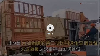 1月27日下午16时50分,首批供应武汉火神山医院的设备从南京天加公司启运,该批设备共6套,包括全新风数码变容量直膨机、模块机、净化型末端等。28日凌晨该设备到达武汉,在武汉火神山医院卸货,并即刻开展净化型空气处理机组等设备的现场组装工作。 这两批捐赠设备重点用于这两所医院的医院负压隔离病房和ICU病房的专业净化系统建设。 2月1日凌晨,栖霞区侨企天加环境科技有限公司捐赠的第二批医用净化空调设备运抵武汉。总价值为180万,包括14台套设备、材料、安装等重点用于医院负压隔离病房和ICU病房的专业净化空调系统设备。 分别从天加南京基地,天津工厂,成都工厂多地同时发货,八百里加急直达武汉雷神山、火神山医院。